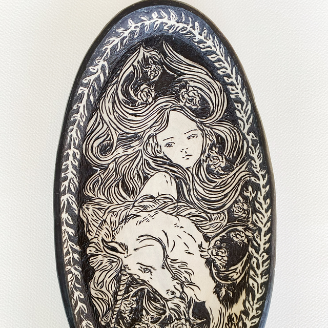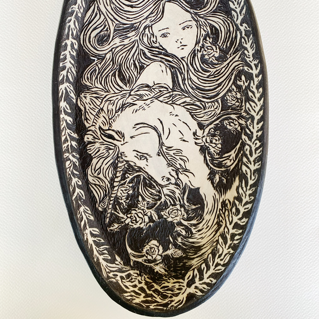 Last Unicorn wall hung platter- Tish Campbell Exhibition